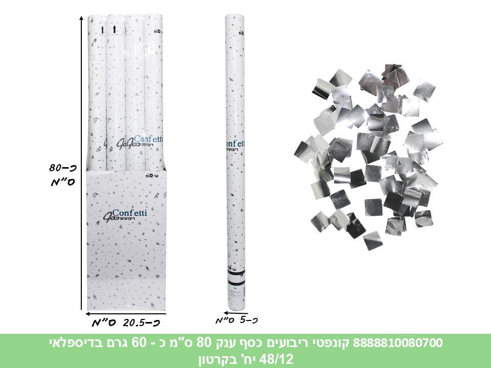 קונפטי ריבועים כסף ענק 80 ס"מ כ - 60 גרם בדיספלאי (48/12) (PARTY)