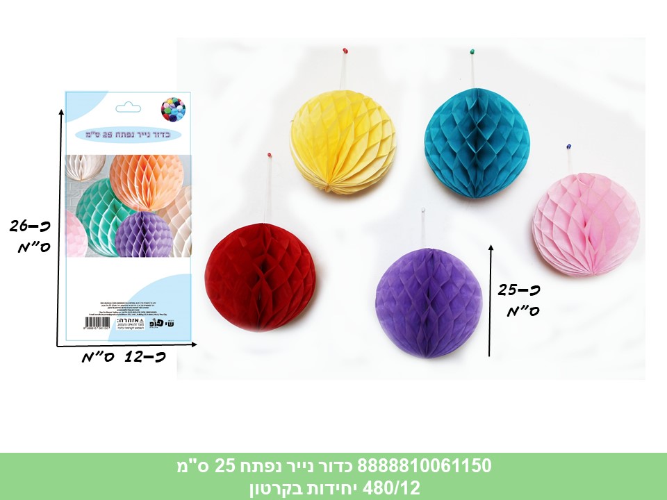 כדור נייר נפתח 25 ס"מ בשקית (12 מצבע בפנימית) (480/12)