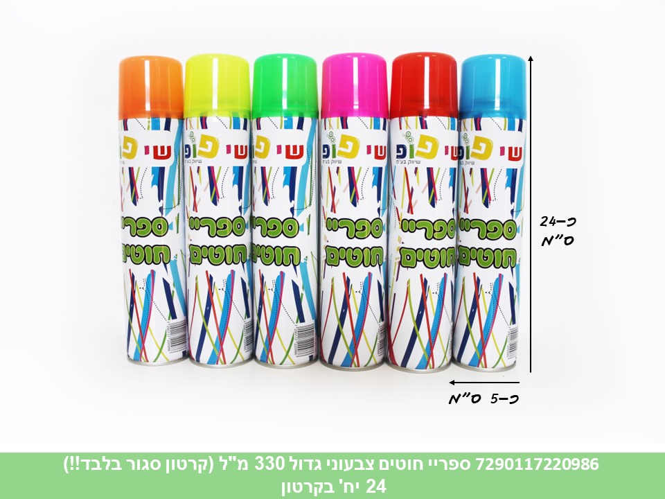 ספריי חוטים צבעוני גדול כ - 330 מ"ל (קרטון סגור בלבד!!)(24)(77 קרטונים במשט