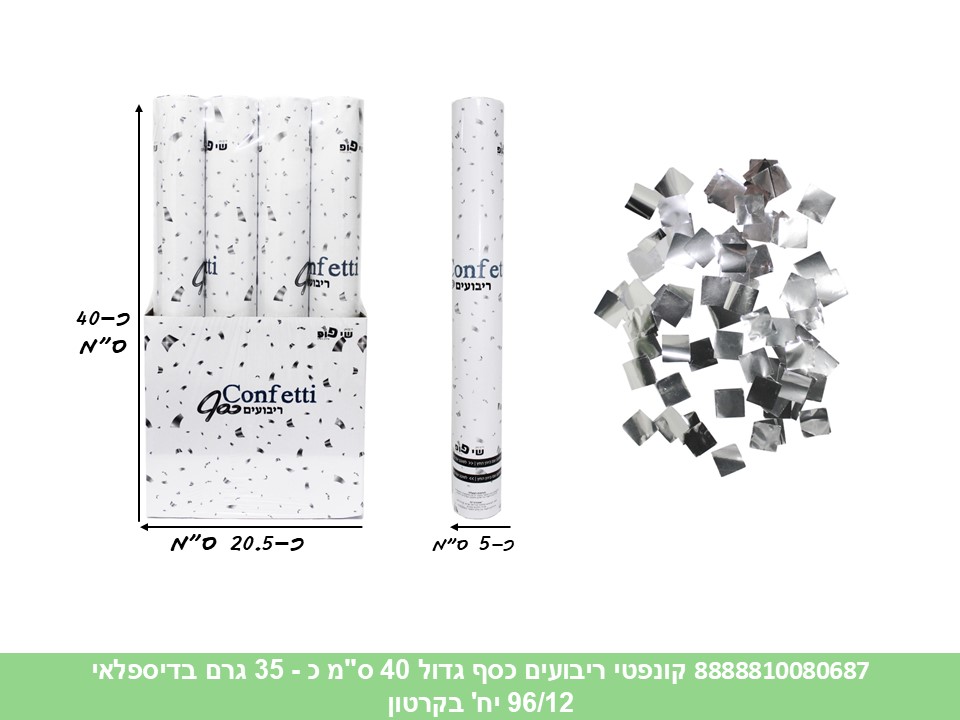 קונפטי ריבועים כסף גדול 40 ס"מ כ - 35 גרם בדיספלאי (96/12) (PARTY)