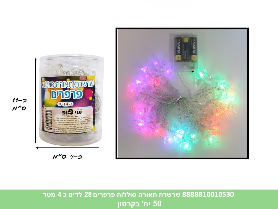 שרשרת תאורה סוללות פרפרים 28 לדים כ 4 מטר בקופסא (לא כולל 3 סוללות AA) (50)