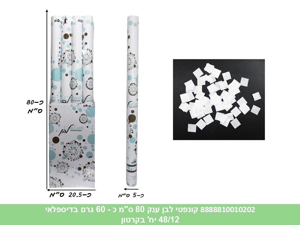 קונפטי לבן ענק 80 ס"מ כ - 60 גרם בדיספלאי (48/12) (PARTY)