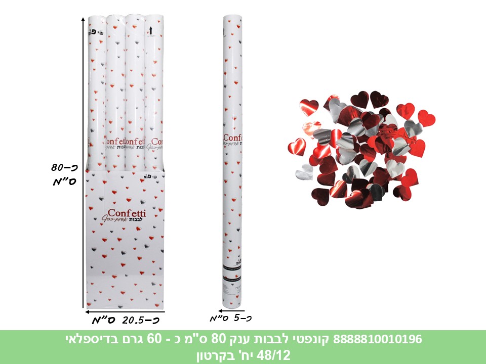 קונפטי לבבות ענק 80 ס"מ כ - 60 גרם בדיספלאי (48/12) (PARTY)