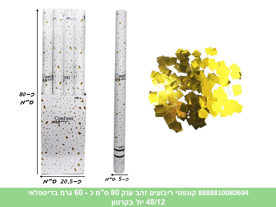 קונפטי ריבועים זהב ענק 80 ס"מ כ - 60 גרם בדיספלאי (48/12) (PARTY)