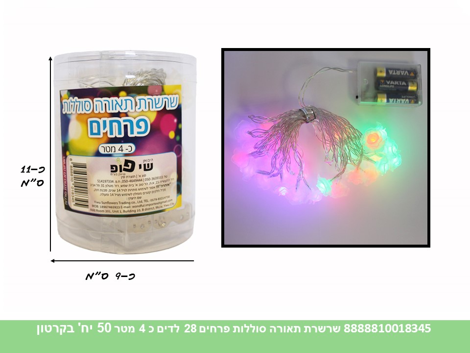 שרשרת תאורה סוללות פרחים 28 לדים כ 4 מטר בקופסא (לא כולל 3 סוללות AA) (50)