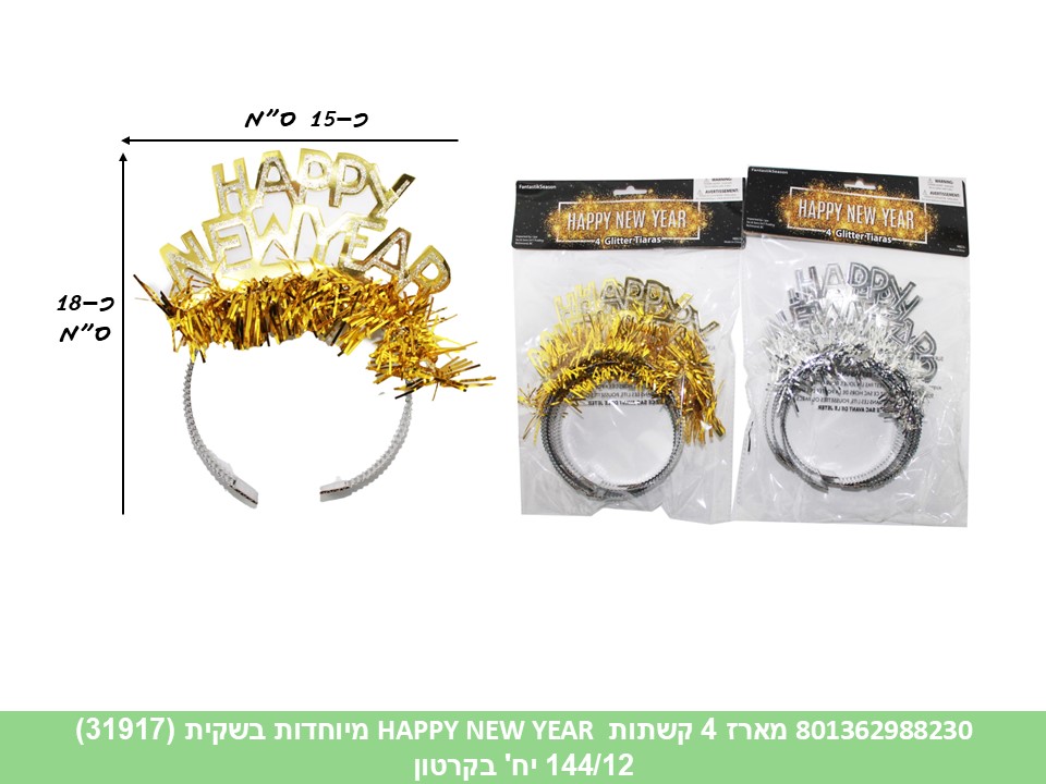 מארז 4 קשתות HAPPY NEW YEAR מיוחדות בשקית (31917) (144) (PARTY)