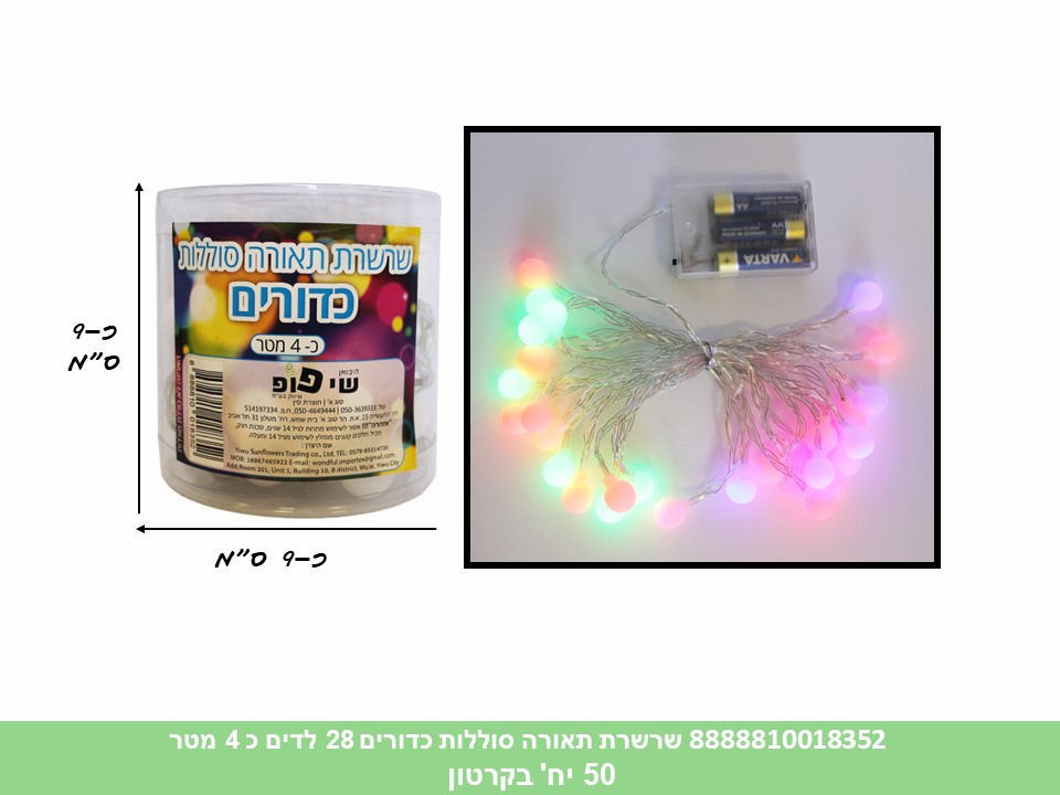 שרשרת תאורה סוללות כדורים 28 לדים כ 4 מטר בקופסא (לא כולל 3 סוללות AA) (50)