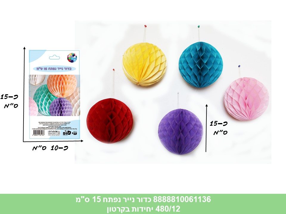 כדור נייר נפתח 15 ס"מ בשקית (12 מצבע בפנימית) (480/12)