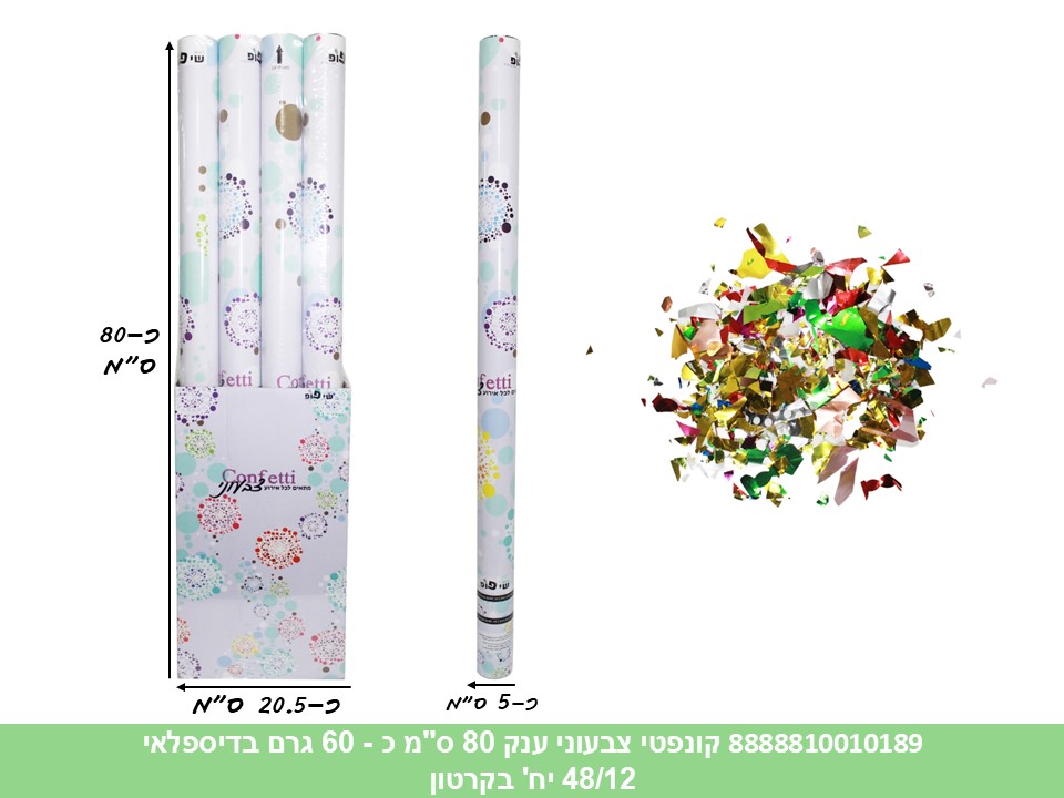 קונפטי צבעוני ענק 80 ס"מ כ - 60 גרם בדיספלאי (48/12) (PARTY)