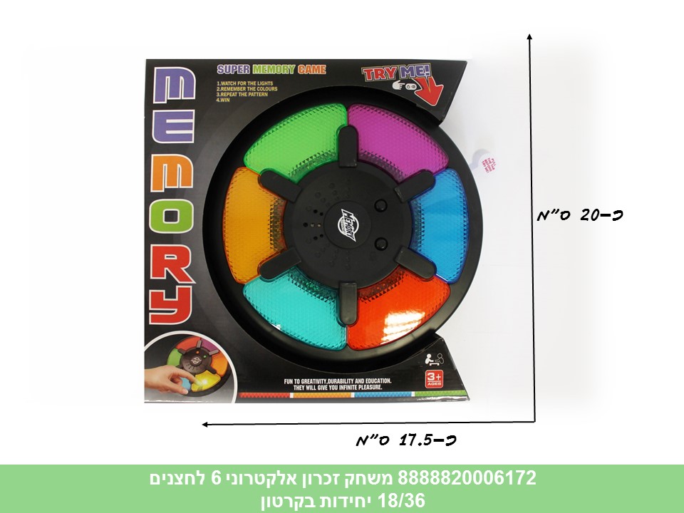 משחק זכרון אלקטרוני 6 לחצנים ענק (36/18)