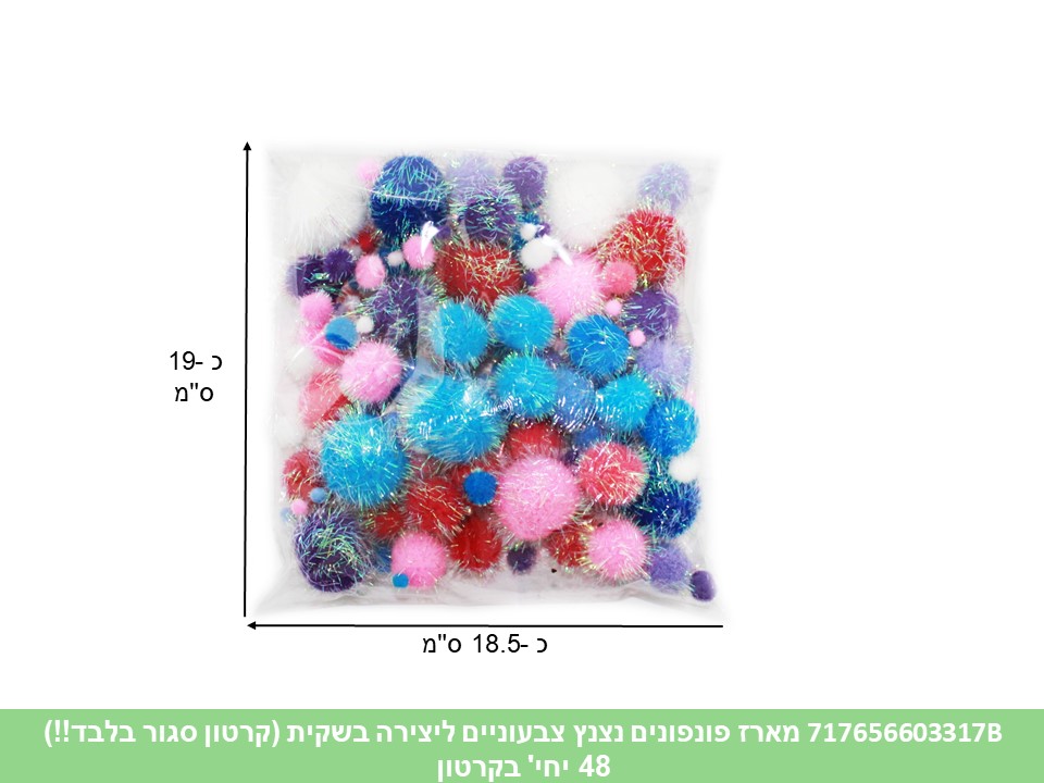 מארז פונפונים נצנץ צבעוניים ליצירה בשקית (קרטון סגור בלבד!!) (48) (ART)