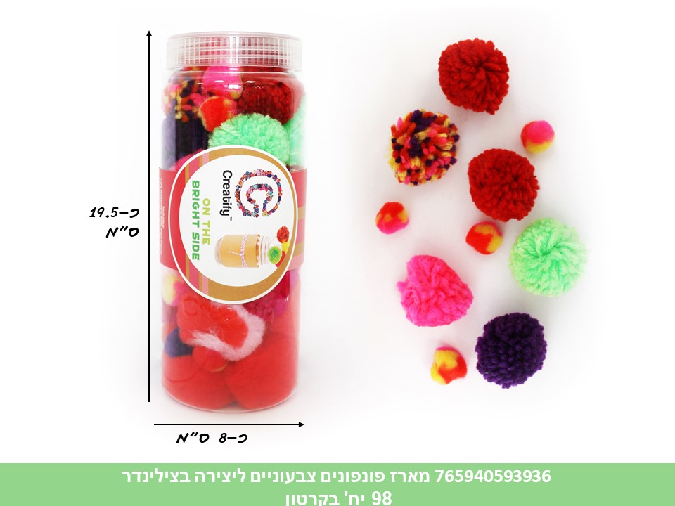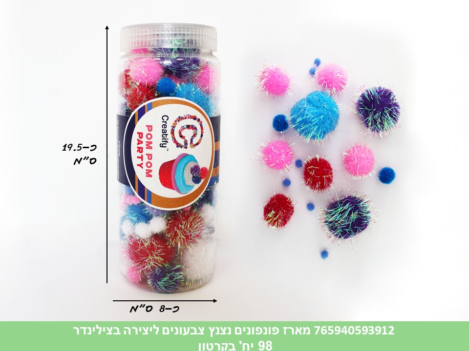 מארז פונפונים צבעוניים ליצירה בצילינדר (98) (ART)