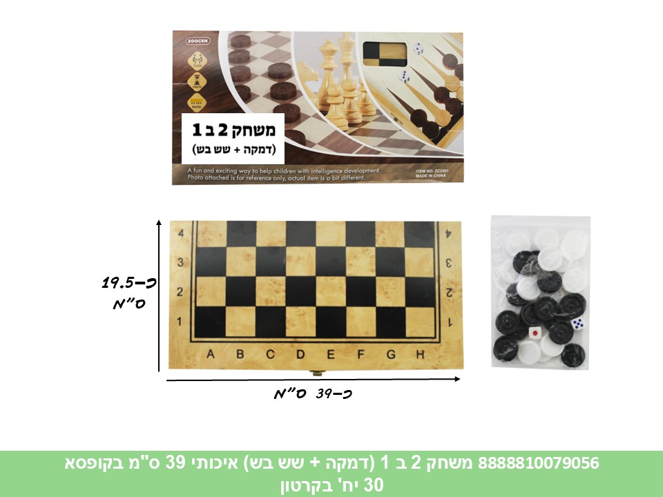 משחק 2 ב 1 (דמקה + שש בש) עץ בינוני 11*21 ס"מ (ממותג) (קרטון סגור בלבד!!) (36)