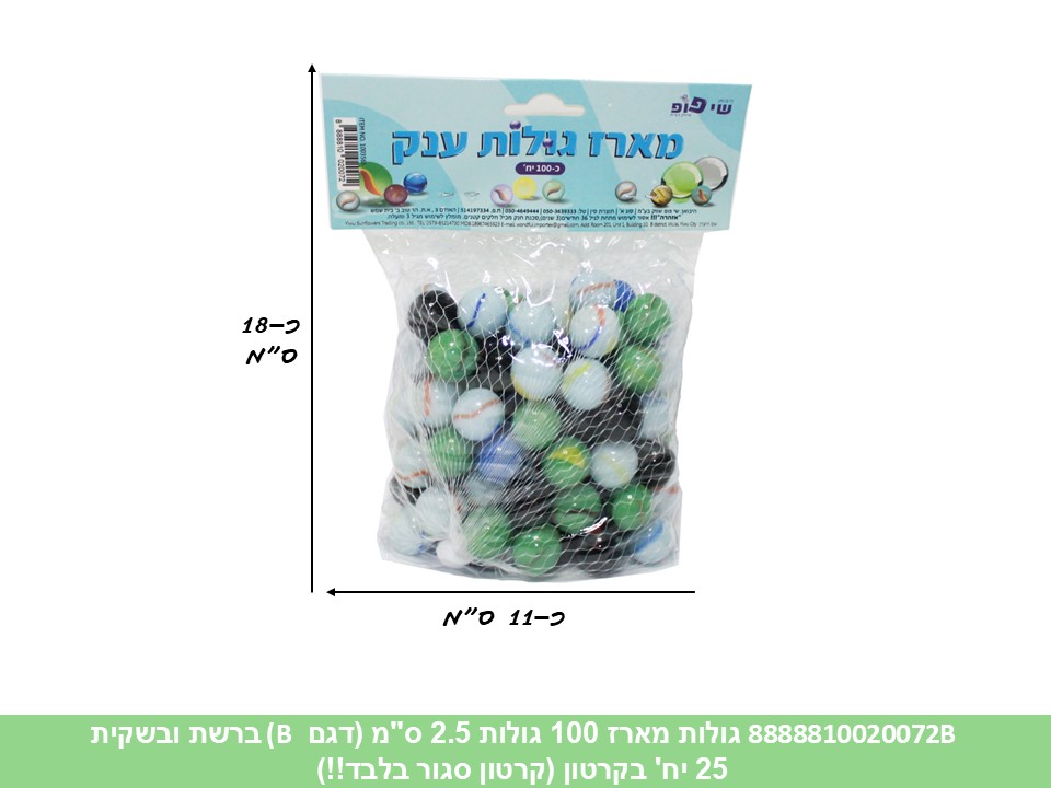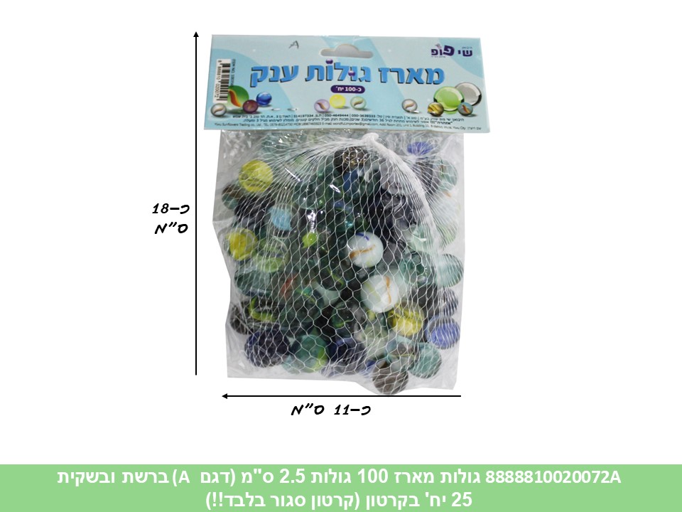גולות מארז 100 גולות 2.5 ס"מ מיוחדות (דגם A) ברשת ובשקית (קרטון סגור בלבד!!) (25)
