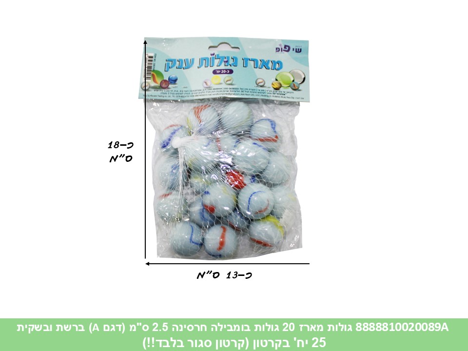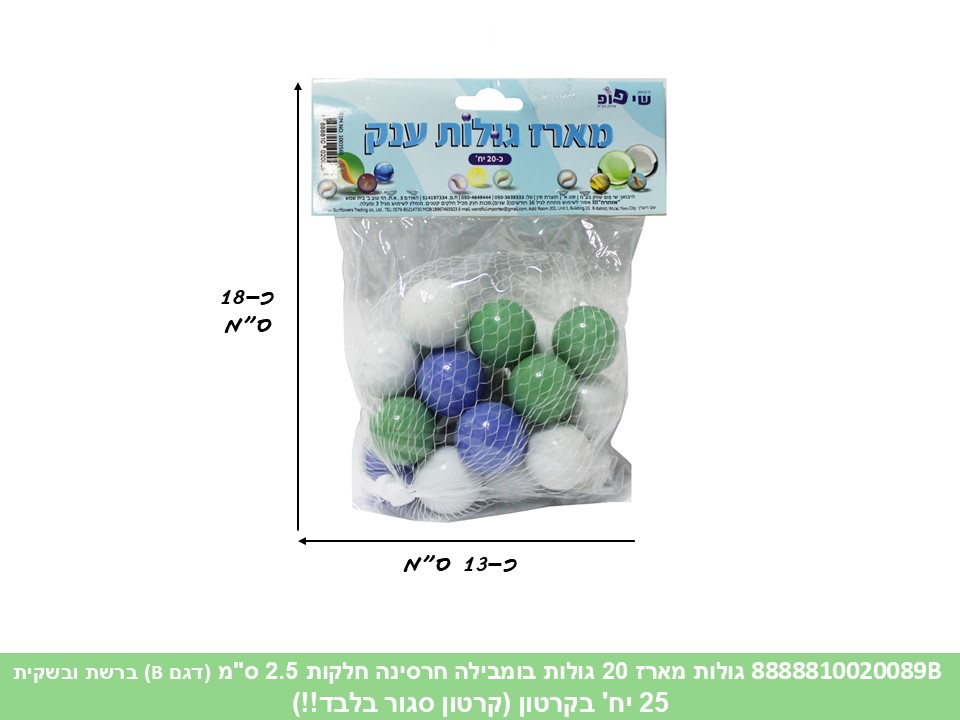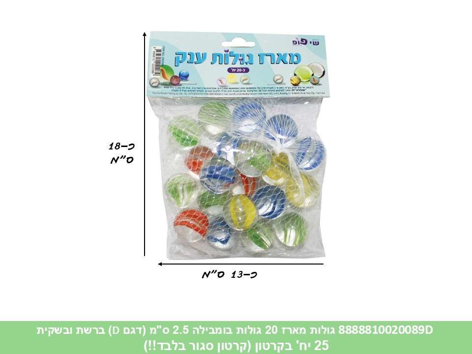 גולות מארז 20 גולות בומבילה 2.5 ס"מ (דגם D) ברשת ובשקית (קרטון סגור בלבד!!) (25)