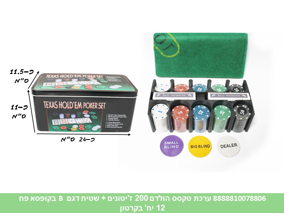 ערכת טקסס הולדם 200 ז'יטונים + שטיח דגם B בקופסא פח (12)
