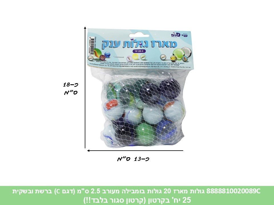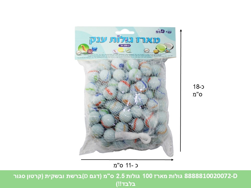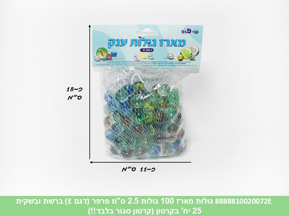 גולות מארז 100 גולות 2.5 ס"מ מיוחדות (דגם C) ברשת ובשקית (קרטון סגור בלבד!!) (25
