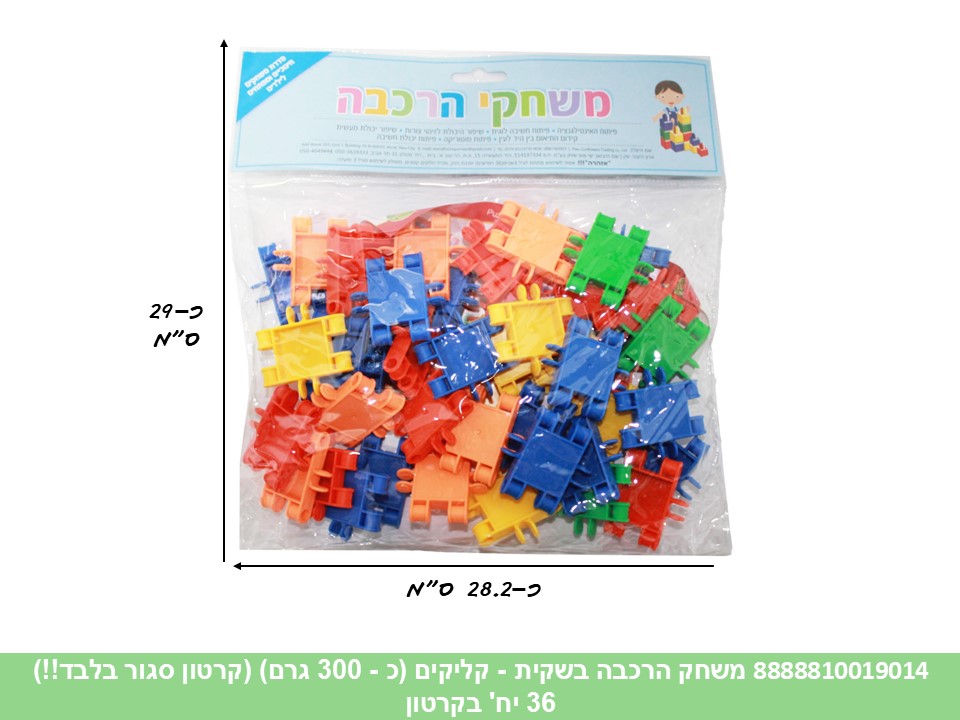 משחק הרכבה בשקית - קליקים (כ - 300 גרם) (ממותג) (קרטון סגור בלבד!!) (36)