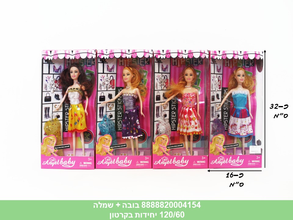 בובת אופנה + סט שמלות בקופסא (72/36)