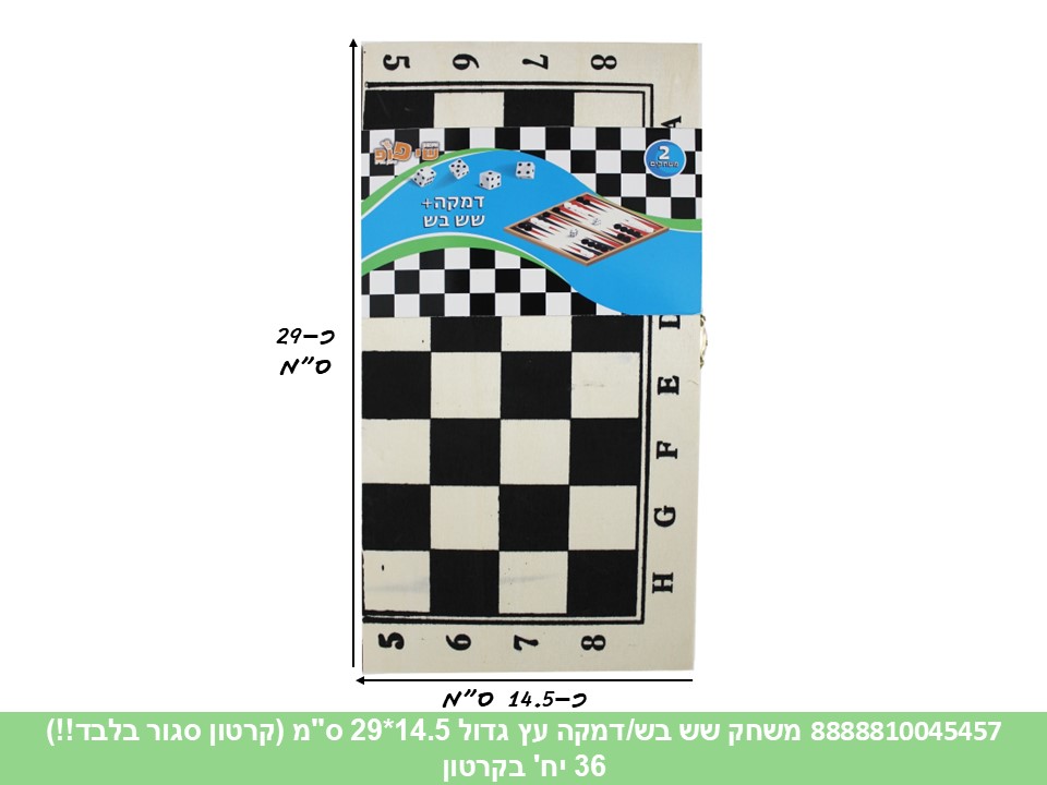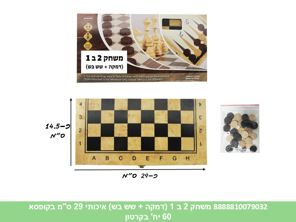 משחק 2 ב 1 (דמקה + שש בש) עץ גדול 14.5*29 ס"מ (ממותג) (קרטון סגור בלבד!!) (36)