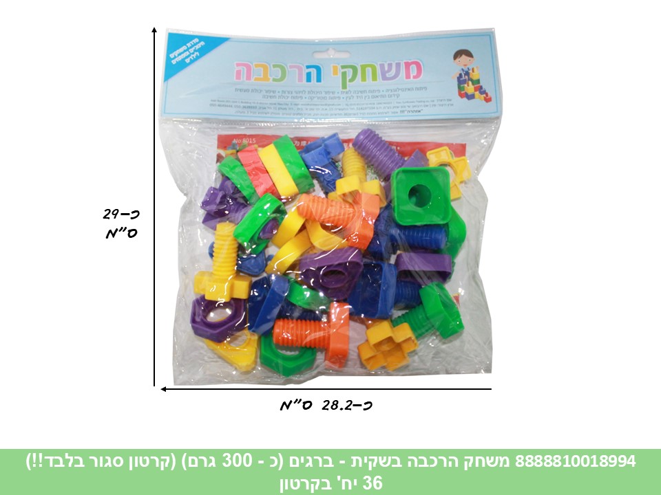 משחק הרכבה בשקית - ברגים (כ - 300 גרם) (ממותג) (קרטון סגור בלבד!!) (36)