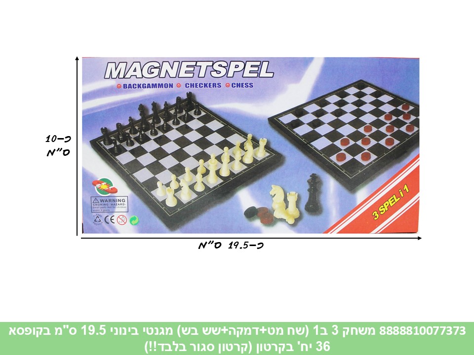 משחק 3 ב1 (שח מט+דמקה+שש בש) מגנטי בינוני 19.5 ס"מ בקופסא (קרטון סגור בלבד!!)(36)