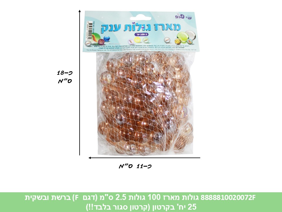 גולות מארז 100 גולות 2.5 ס"מ אדמה (דגם F) ברשת ובשקית (קרטון סגור בלבד!!) (25)