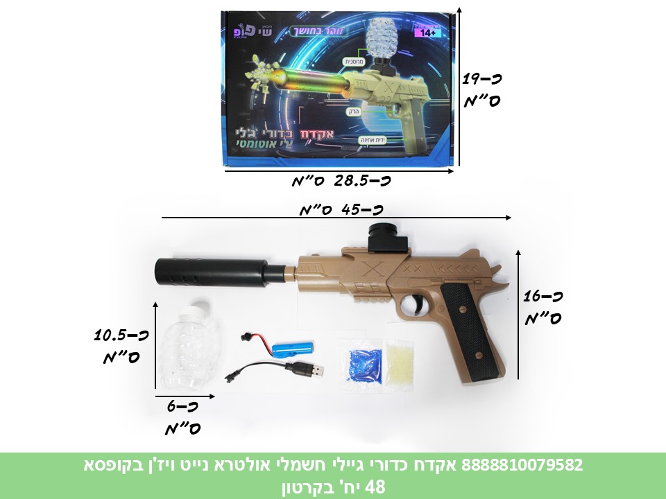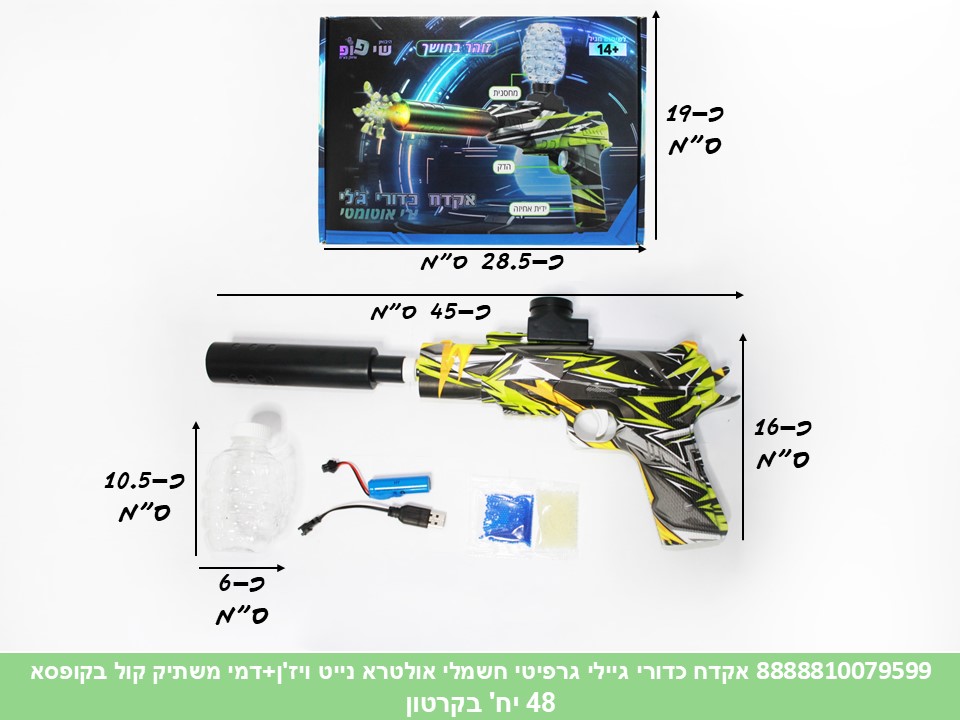 אקדח כדורי ג׳לי חשמלי גרפיטי זוהר בחושך + דמי משתיק קול בקופסא (ממותג) (48)