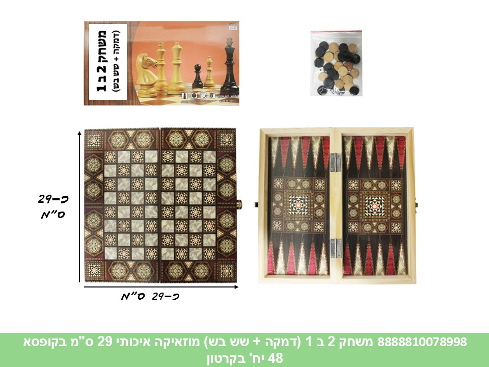 משחק 2 ב 1 (דמקה + שש בש) מוזאיקה איכותי 29 ס"מ (כלי עץ) בקופסא (48)