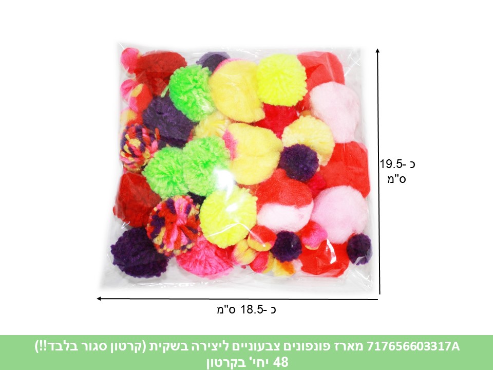 מארז פונפונים צבעוניים ליצירה בשקית (קרטון סגור בלבד!!) (48) (ART)