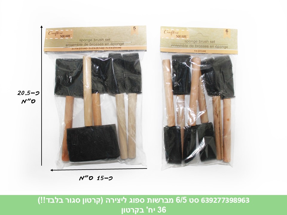 סט 5 מברשות ספוג ליצירה (קרטון סגור בלבד!!) (36) (ART)
