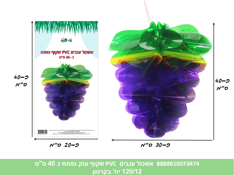 אשכול ענבים PVC שקוף ענק נפתח כ 40 ס"מ בשקית (120/12)