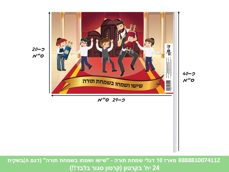 מארז 10 דגלי שמחת תורה - "שישו ושמחו" (דגם A) בשקית (קרטון סגור בלבד!!) (24)