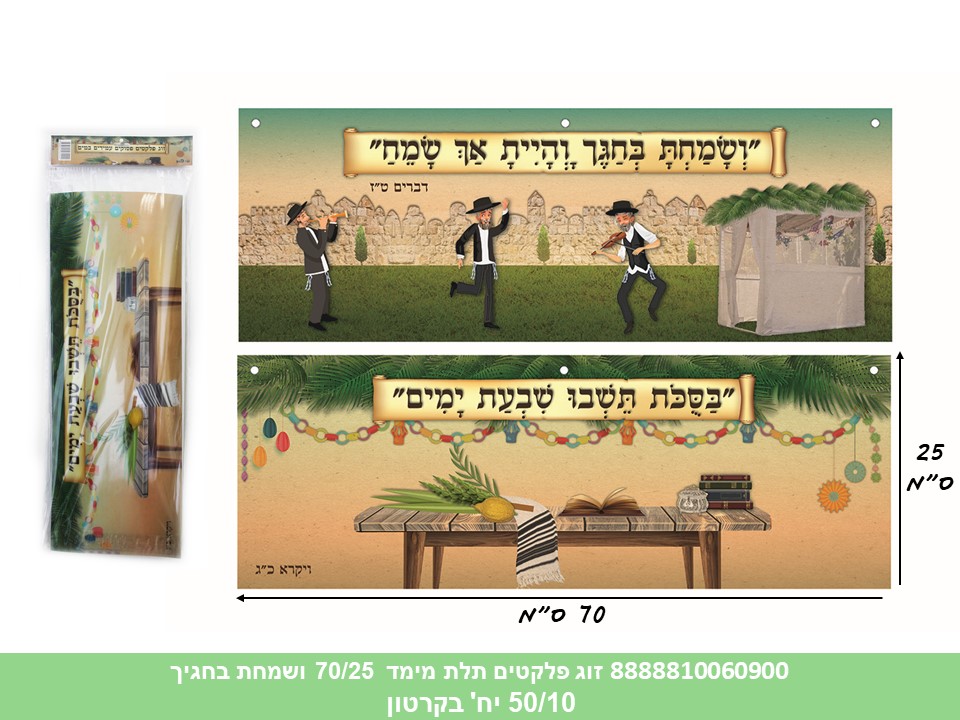 זוג פלקטים 70*25 ס"מ 3D ושמחת בחגך+בסוכות תשבו בתיק PVC עמידים במים (50/10)
