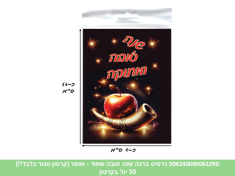 כרטיס ברכה שנה טובה שחור - שופר (קרטון סגור בלבד!!) (50) (ROSH)