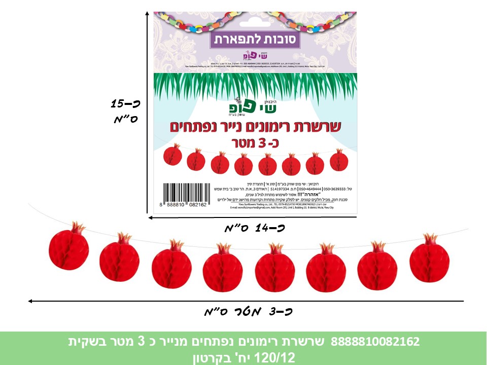 שרשרת רימונים נפתחים מנייר כ 3 מטר בשקית (120/12)