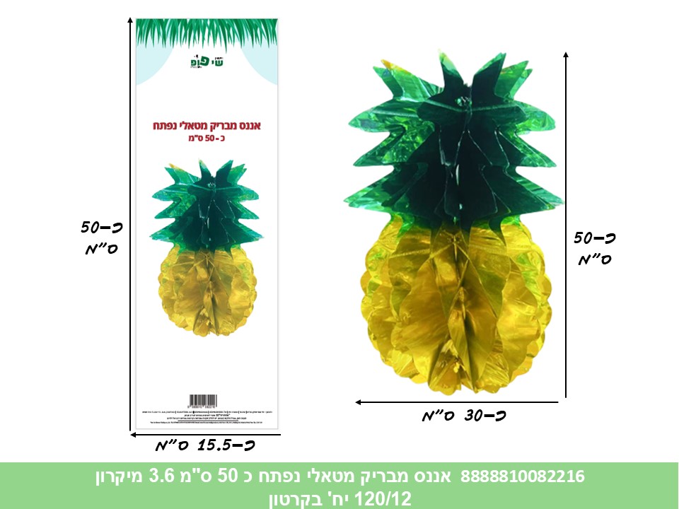 אננס מבריק מטאלי נפתח כ 60 ס"מ ענק בשקית (96/12)