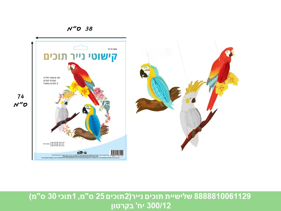 שלישיית קישוטי נייר תוכים בשקית (300/12)