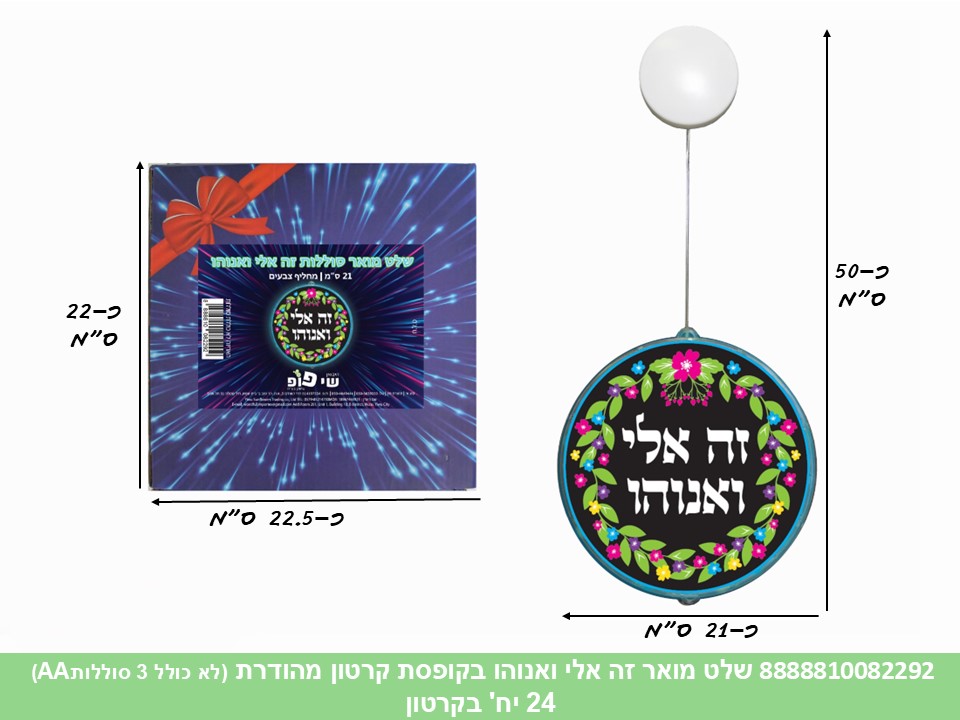 שלט מואר זה אלי ואנוהו בקופסת קרטון מהודרת (לא כולל 3 סוללות AA) (24)