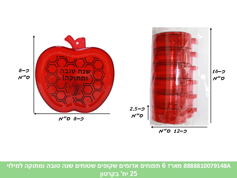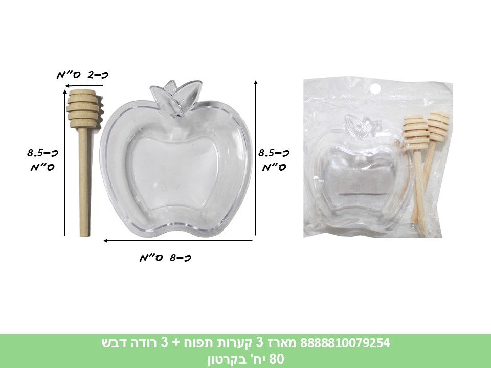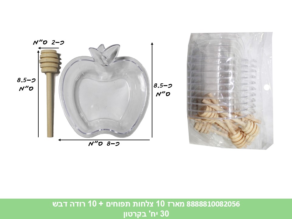 מארז 10 צלחות תפוחים + 10 רודה דבש עץ (קרטון סגור בלבד!!) (30) (ROSH)