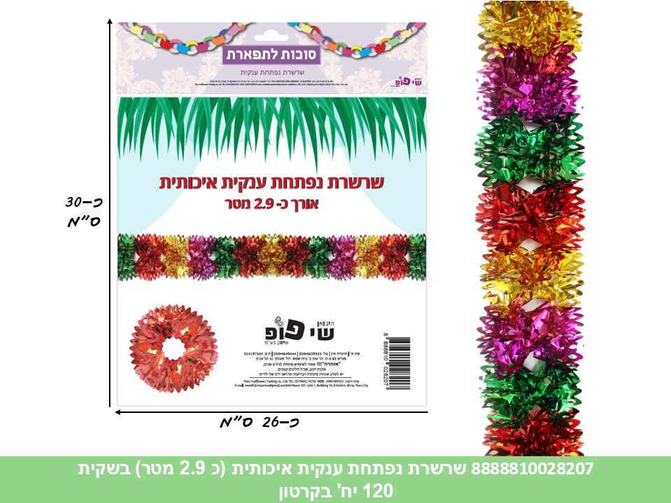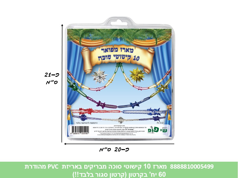 מארז 10 קישוטי סוכה מבריקים באריזת PVC מהודרת (קרטון סגור בלבד!!) (60)