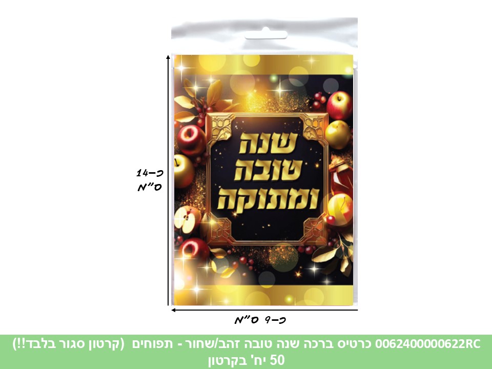 כרטיס ברכה שנה טובה זהב/שחור - תפוחים (קרטון סגור בלבד!!) (50) (ROSH)