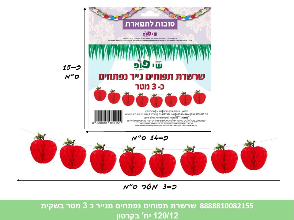 שרשרת תפוחים נפתחים מנייר כ 3 מטר בשקית (120/12)