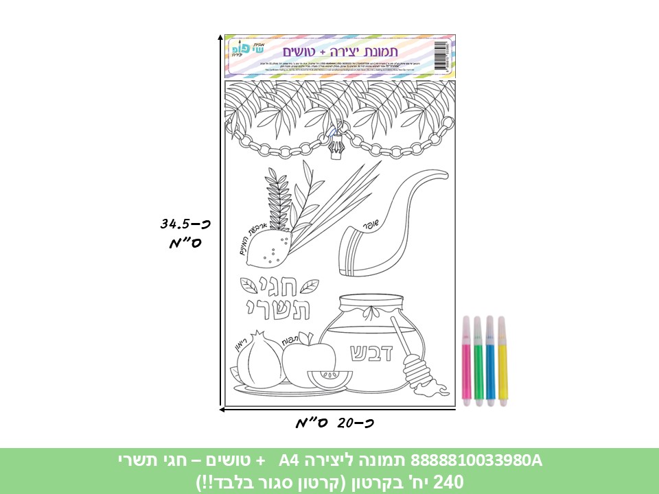 תמונה ליצירה (SHAY POP ART) A4 + טושים - חגי תשרי (קרטון סגור בלבד!!) (240/12)