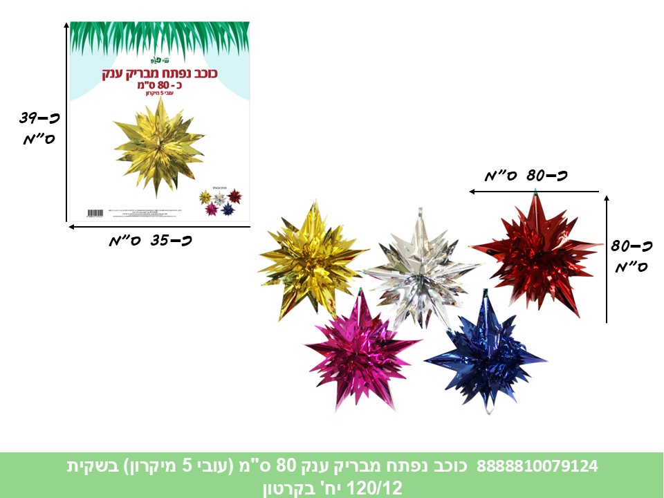 כוכב נפתח מבריק ענק 80 ס"מ (עובי 5 מיקרון) בשקית (120/12)