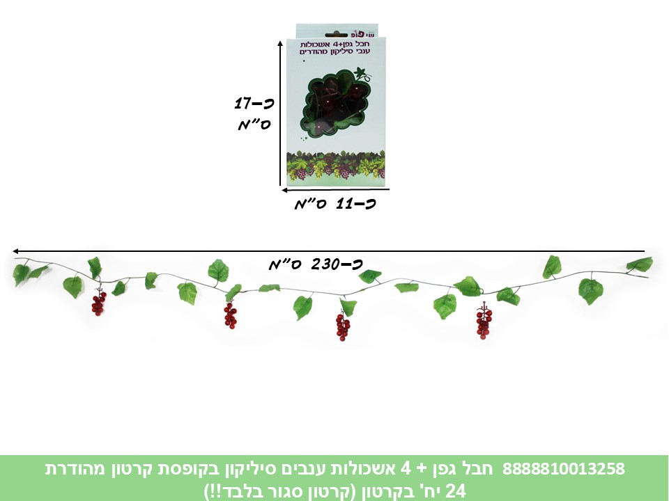חבל גפן + 4 אשכולות ענבים סיליקון בקופסת קרטון מהודרת (קרטון סגור בלבד!!) (24)