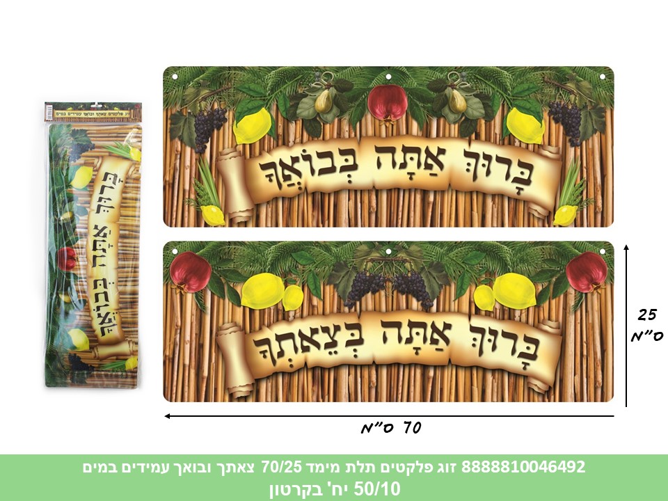 זוג פלקטים 70*25 ס"מ 3D ברוך אתה בבואך+בצאתך בתיק PVC עמידים במים (50/10)