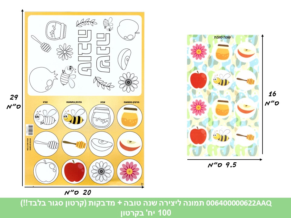 תמונה ליצירה (HOSHVIM) שנה טובה + מדבקות (קרטון סגור בלבד!!) (100) (ROSH)