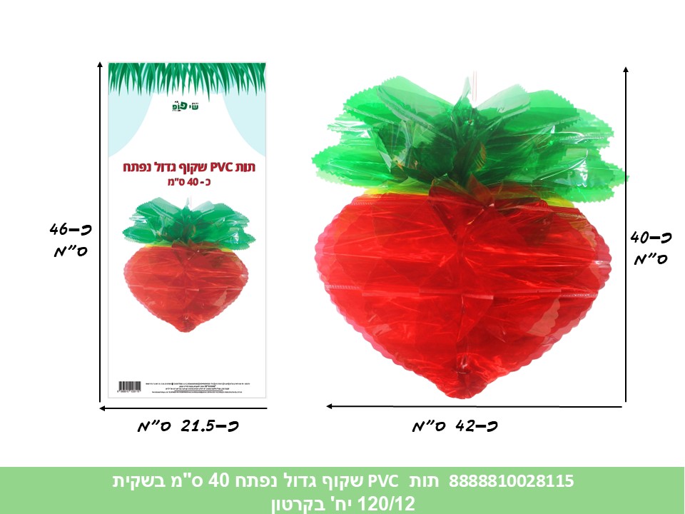 תות PVC שקוף גדול נפתח 40 ס"מ בשקית (120/12)