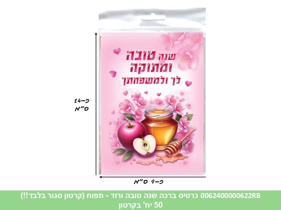 כרטיס ברכה שנה טובה ורוד - תפוח (קרטון סגור בלבד!!) (50) (ROSH)